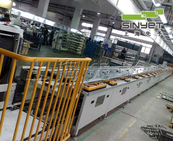 工藝非標汽車座椅生產(chǎn)線系統(tǒng)功能包含:產(chǎn)品生產(chǎn)過程防錯系統(tǒng)、外型差異自動檢測系統(tǒng)、生產(chǎn)管理系統(tǒng)、質(zhì)量追溯系統(tǒng)等等;PLC邏輯控制,動力源為電與壓縮空氣(0.5MPa),電動及氣動執(zhí)行原件,清潔環(huán)保,精度及自動化程度高。 非標汽車座椅生產(chǎn)線采用專用鋁材導(dǎo)軌、鋼材或鋁材框架結(jié)構(gòu)形式,減速馬達由三倍速鏈條傳輸動力,夾具固定在工裝板上,工裝板兩側(cè)置于鏈條上由鏈條帶動移動,流水線采用雙層結(jié)構(gòu),工人在上層組裝線的工裝板上生產(chǎn)操作,每工位配置止停阻擋器,可控制每工位上的工裝板的走停,線體兩端設(shè)置自動升降系統(tǒng),空板及夾具從下層組裝線返還,下層流水線末端設(shè)置臥式阻擋器,流水線電氣部分采用日本三菱PLC編程、變頻器調(diào)速,光電開關(guān)行程開關(guān)控制,設(shè)備運行平穩(wěn)可靠,操作安全方便,流水線上部可配置照明燈具、氣路及快速插嘴、工具吊軌吊環(huán)、工藝卡框、風扇、插座等,整體美觀、適用、環(huán)保、經(jīng)濟